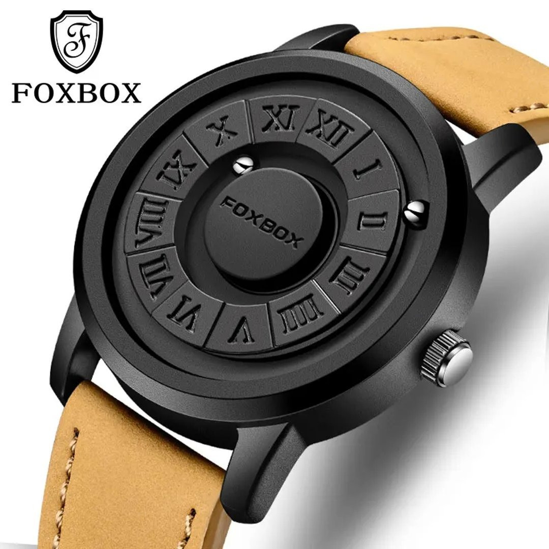 FOXBOX Men Watch LIGE Brand Creative Stainless Steel Band Scrolling Beads Quartz Watches for Men Magnetic Force Waterproof Watch