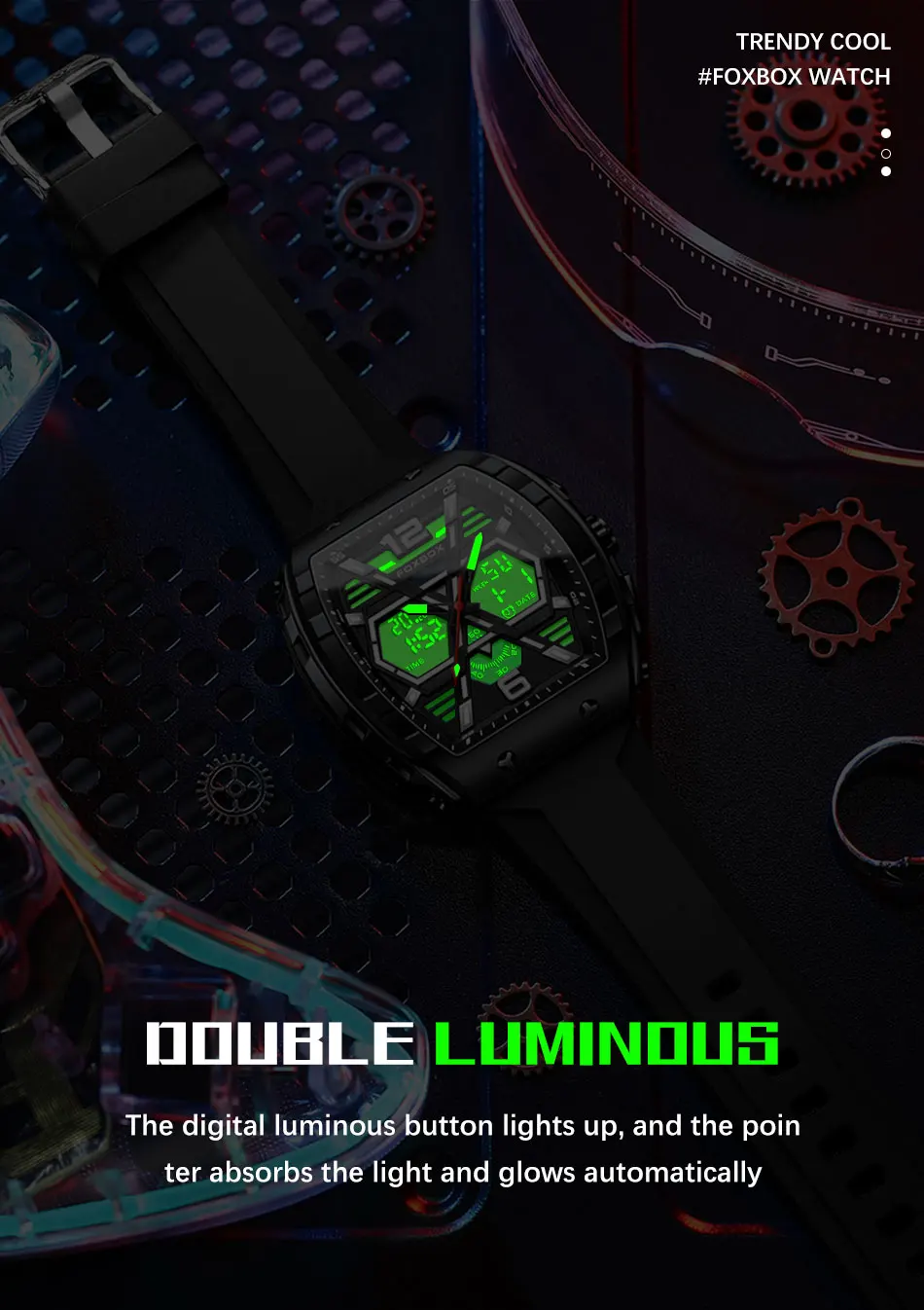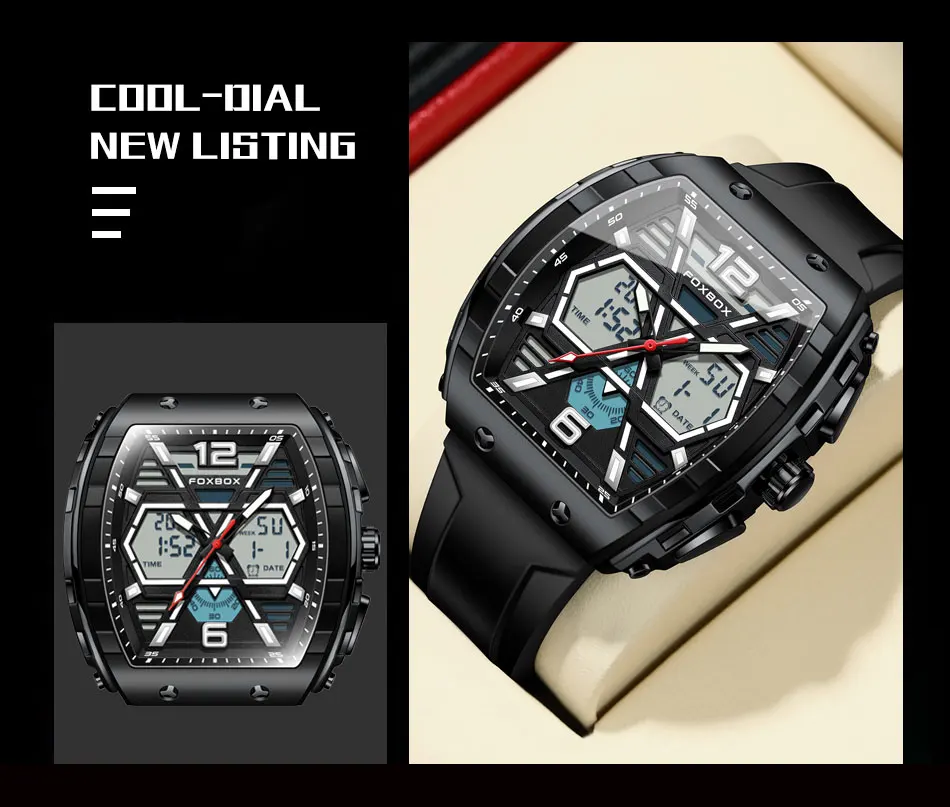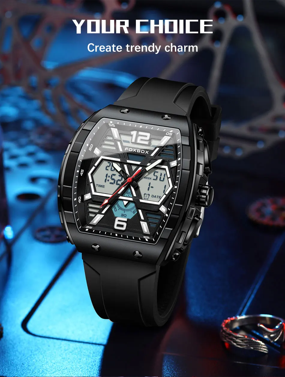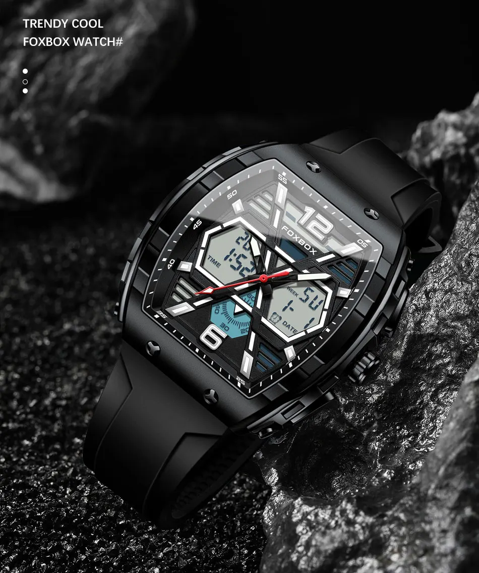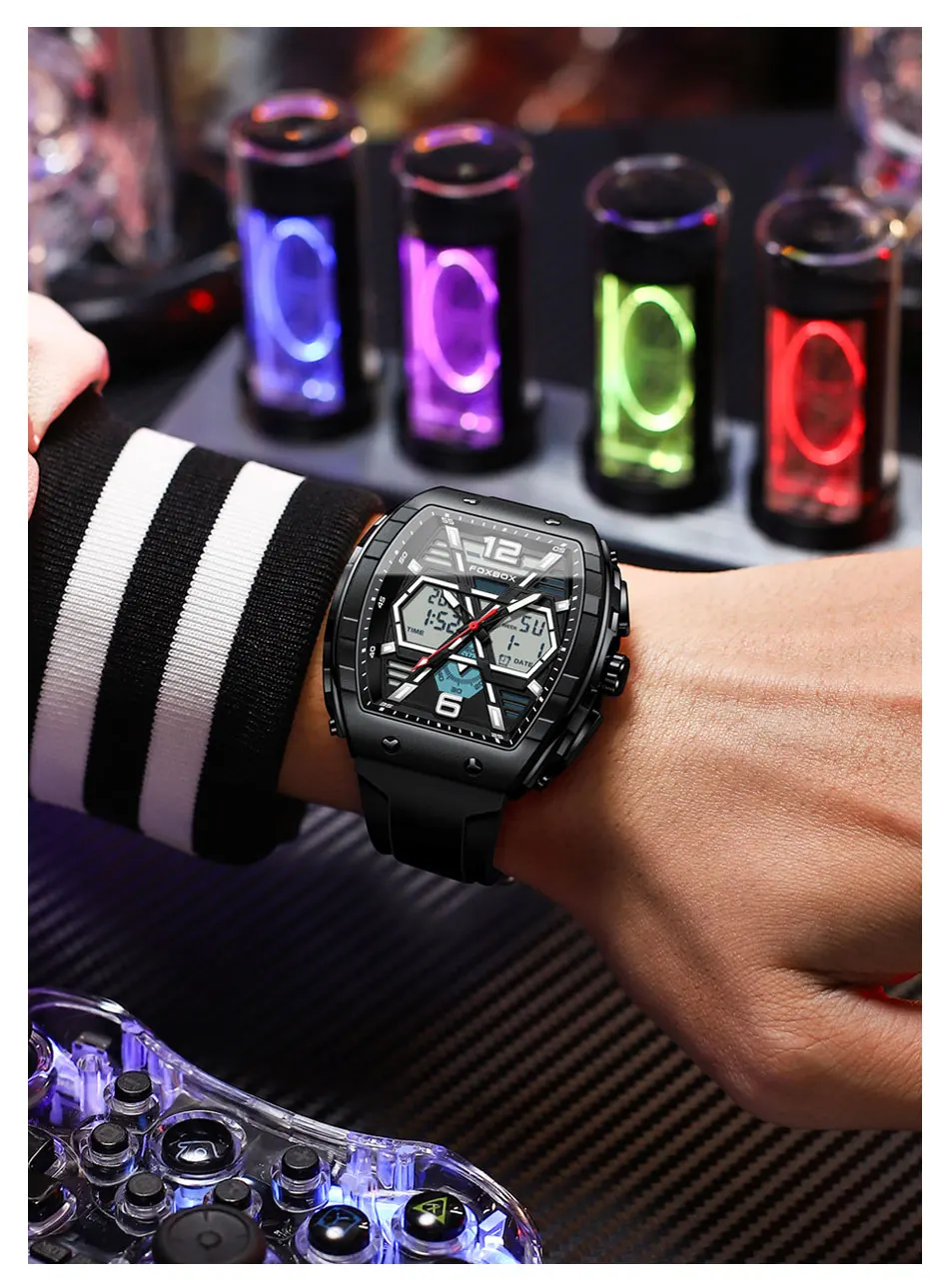 FOXBOX Slicon Luxury Mens Quartz Watch Sport Waterproof Digital Luminous watch