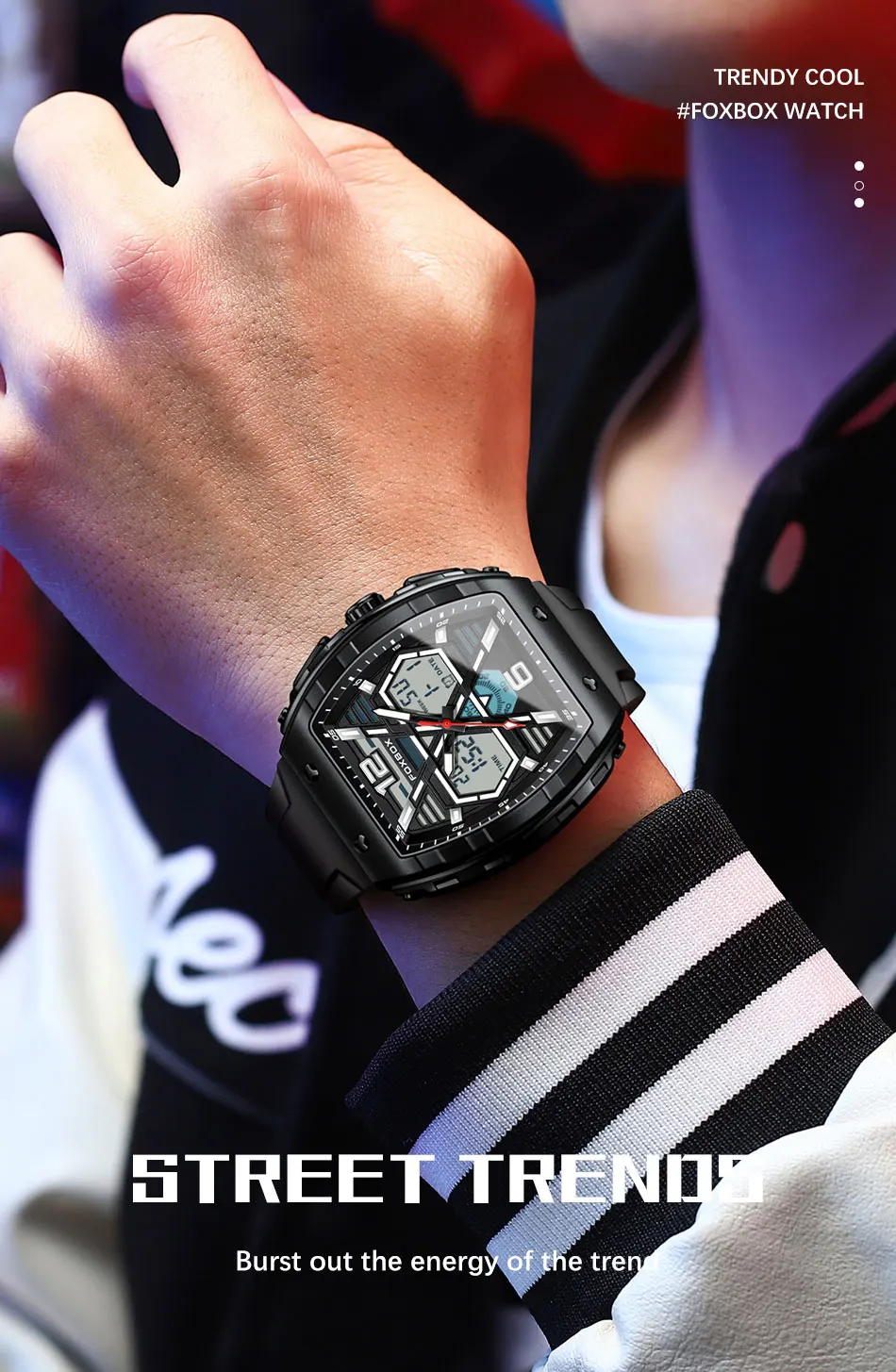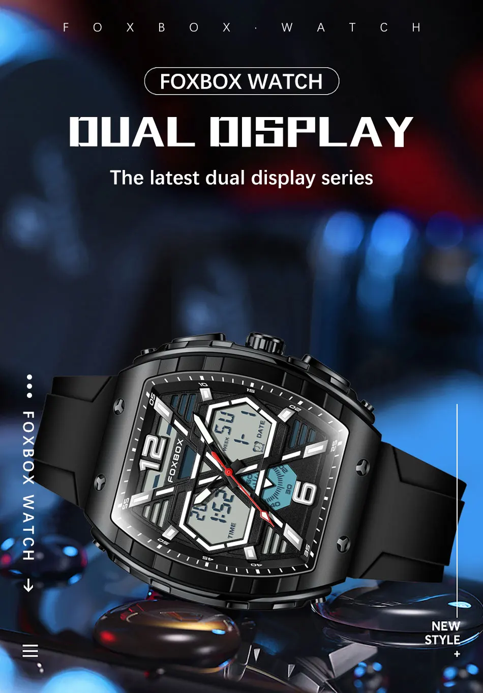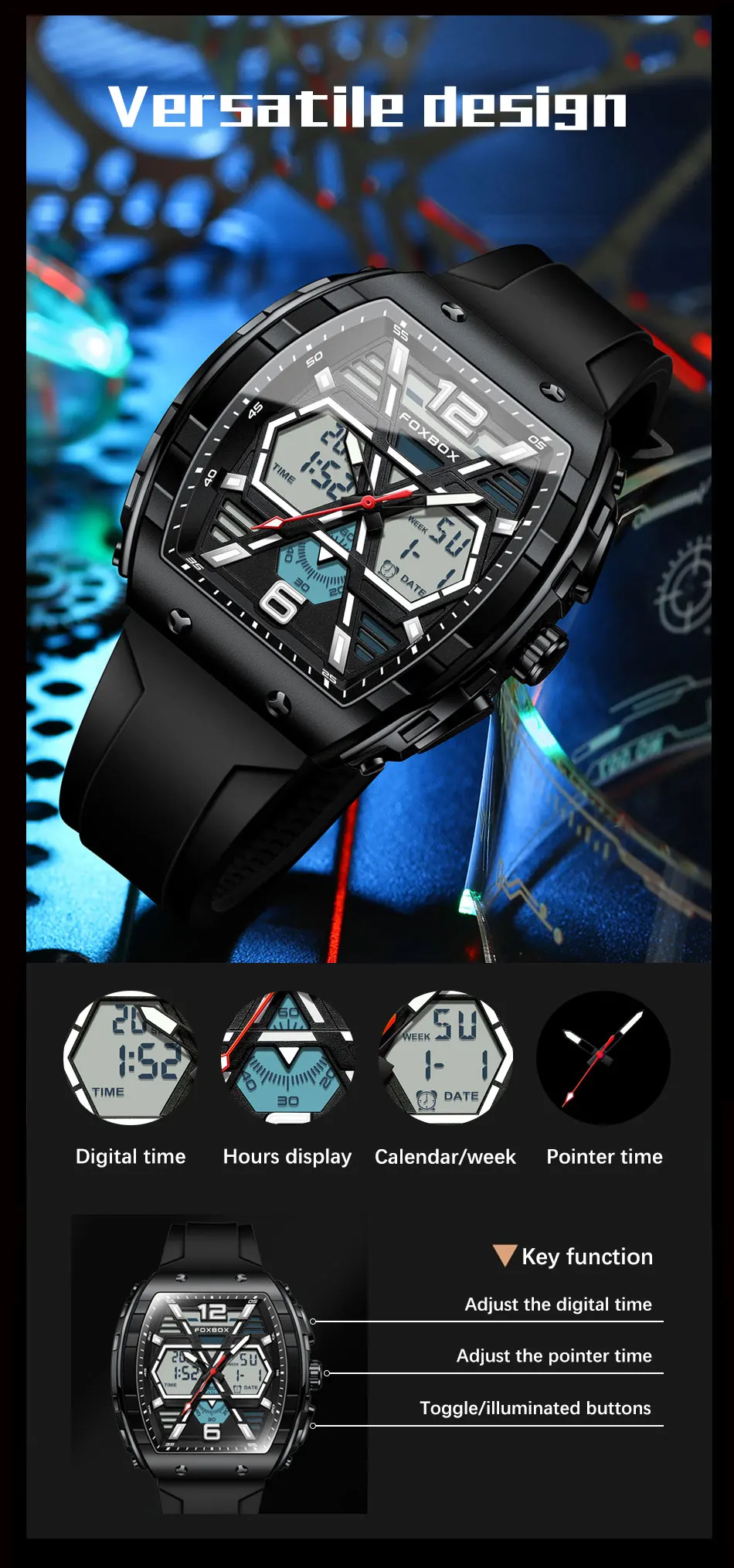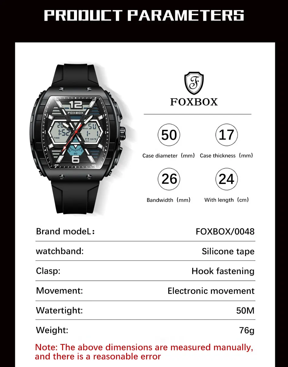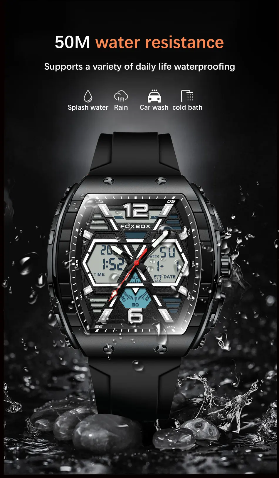 FOXBOX Slicon Luxury Mens Quartz Watch Sport Waterproof Digital Luminous watch