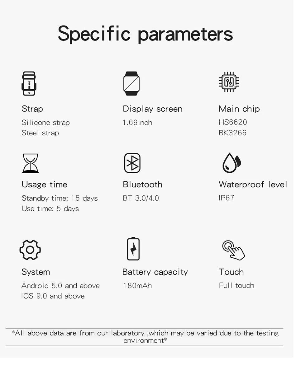 Dual Mode HS6620D/BK6623 high-quality chip Equipped with high-quality dual-mode (HS6620D/BK6623) chip, larger memory, provides enough hardware support for the watch to make the watch run faster. The watch provides enough hardware support to make the watch run faster and more stable. Low power consumption design, more stable standby for one week of normal use. Low-power design, one week of normal use, 45 days of standby, 10 hours of operation, and long battery life.