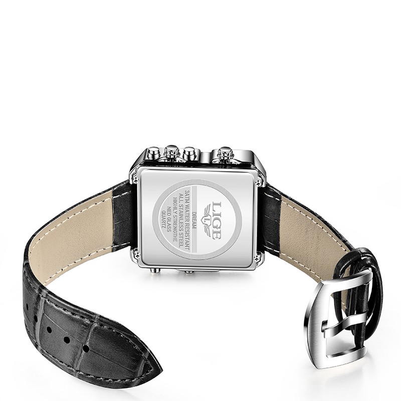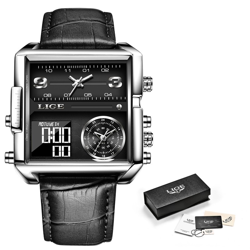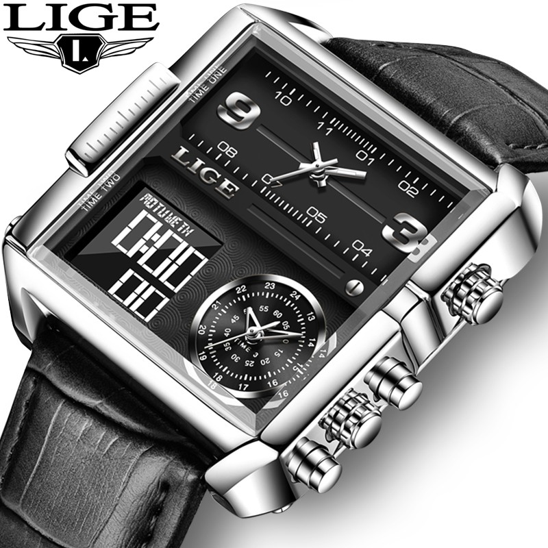 LIGE 8925 Top Brand Luxury Mens Watches Square Digital Sports Quartz Wrist Watch for Men Waterproof Stopwatch Relogio Masculino