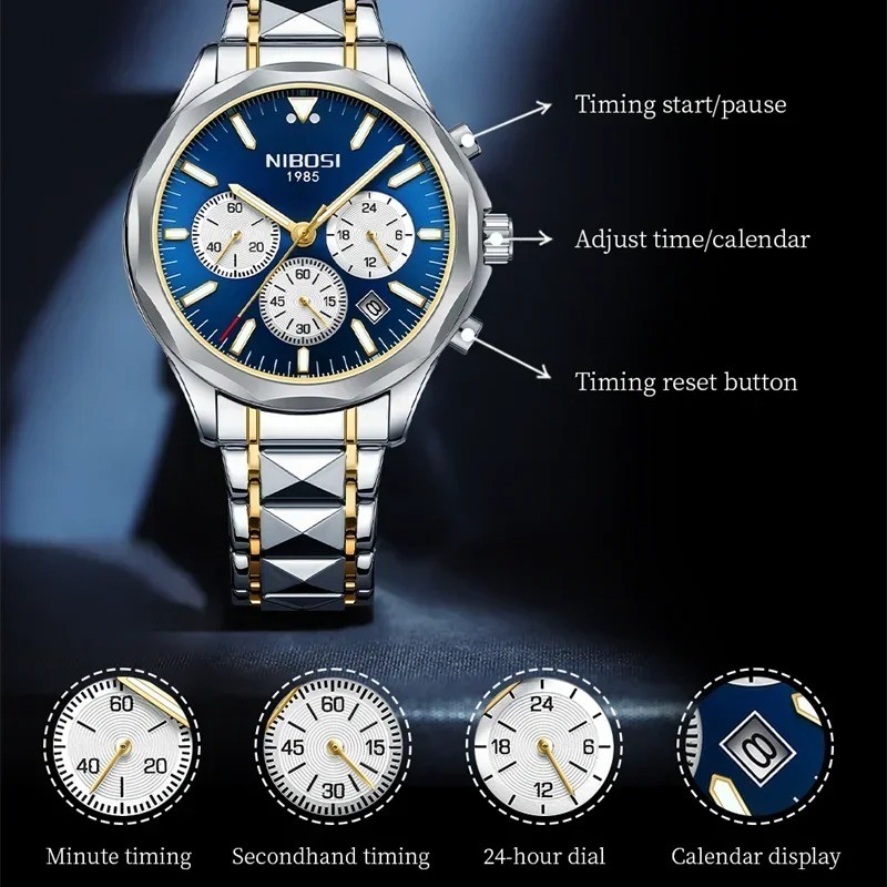 NIBOSI 2608 Luxury Watch Men Top Brand Wristwatch Chronograph Waterproof Luminous Date Men Watches