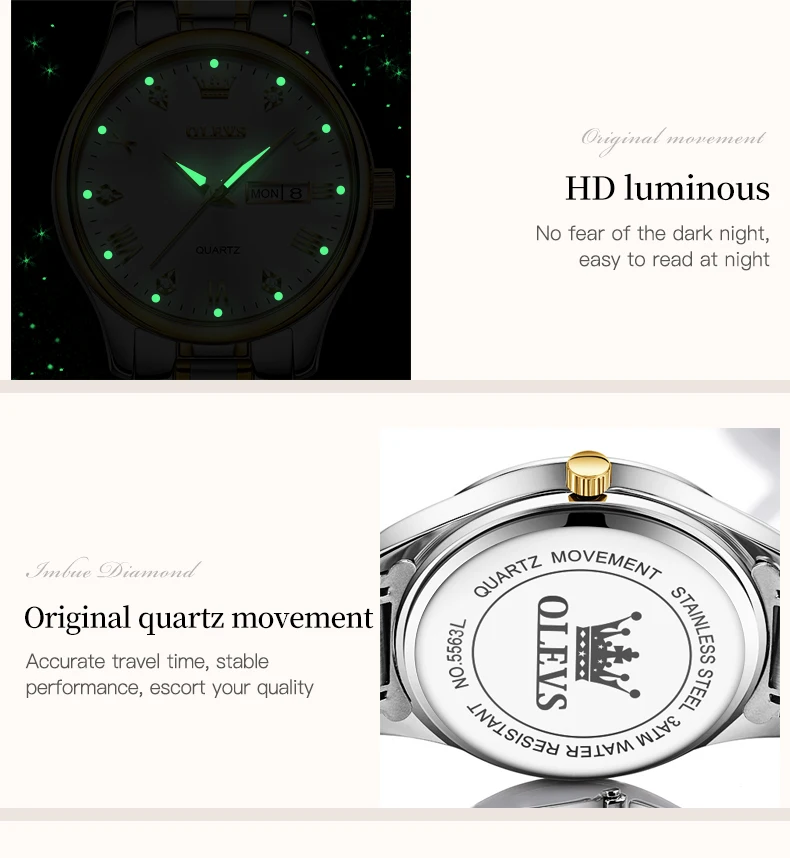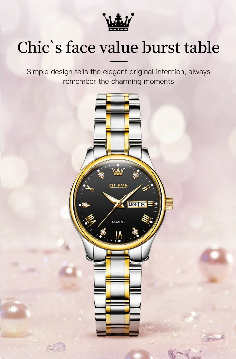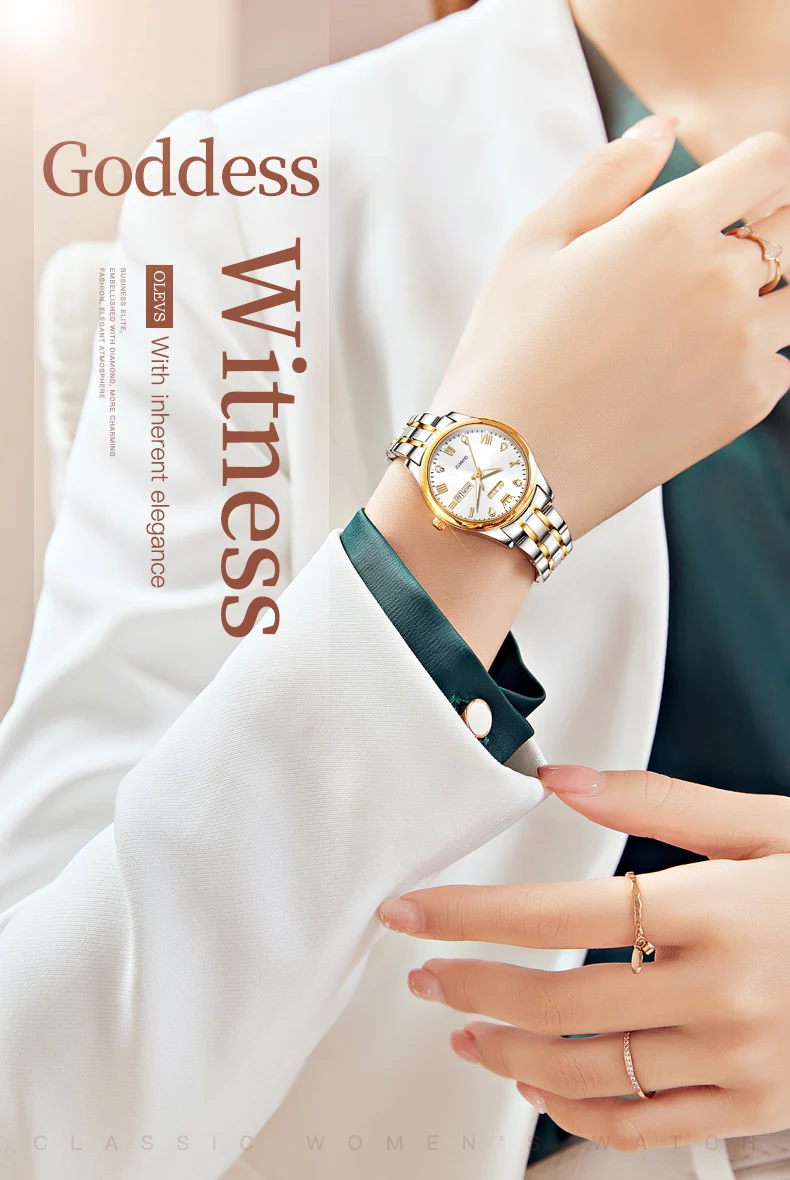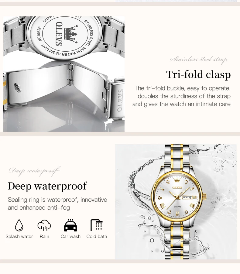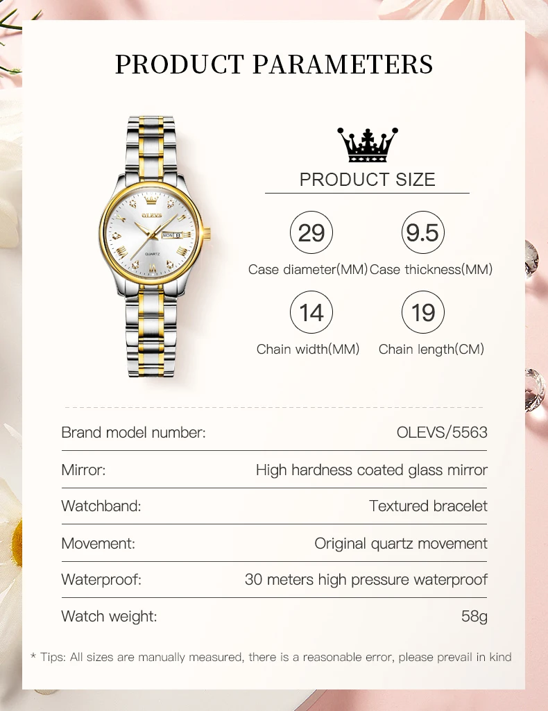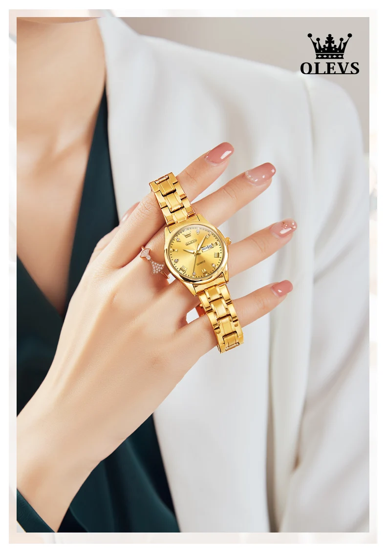 OLEVS 5563 Quartz Waterproof Women Wristwatch, Diamond-encrusted Fashion Stainless Steel Strap Watch For Women