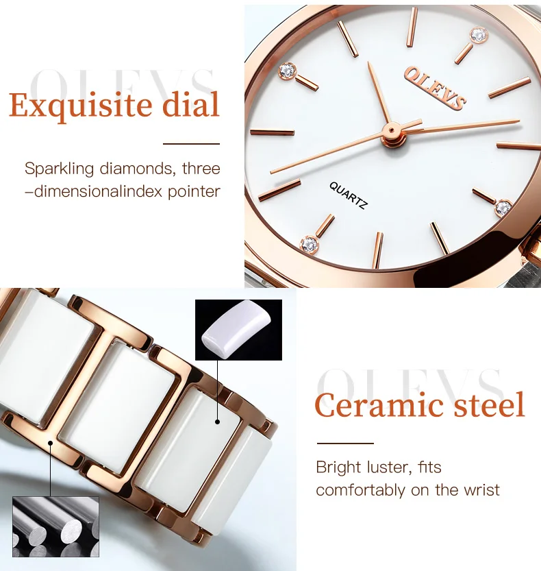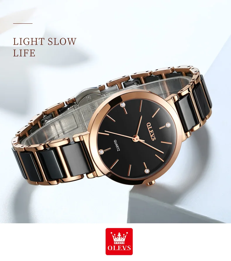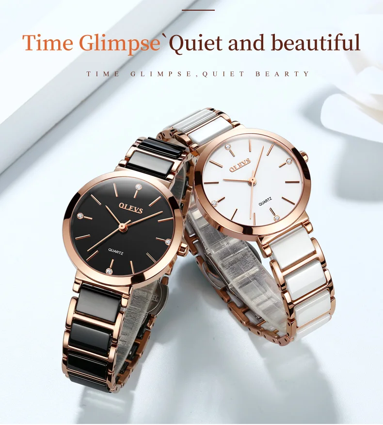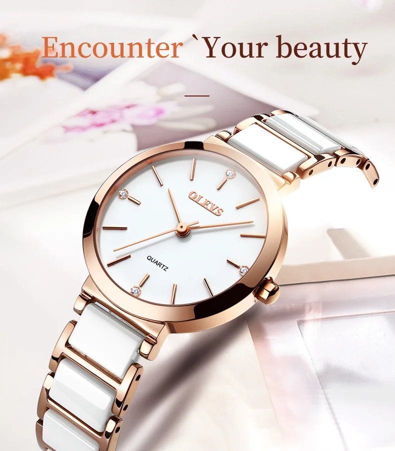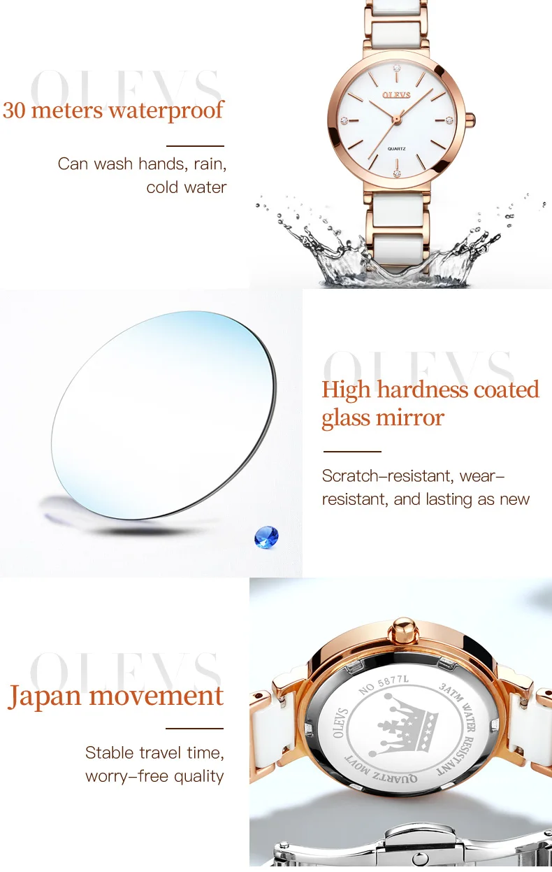 OLEVS 5877 High Quality Japanese Movement Japan Quartz Women Wristwatches Waterproof Ceramic Strap Fashion Watch for Women