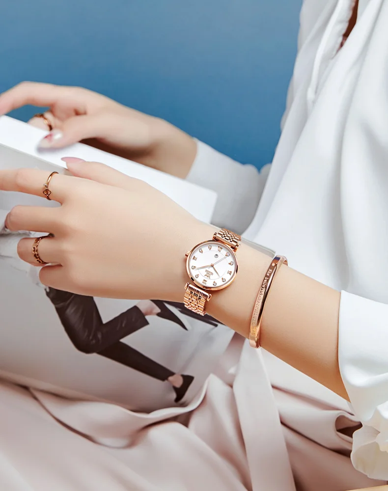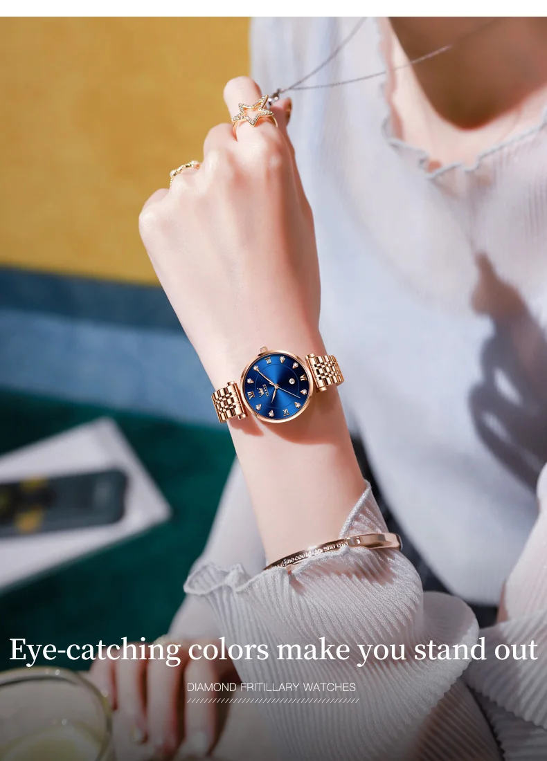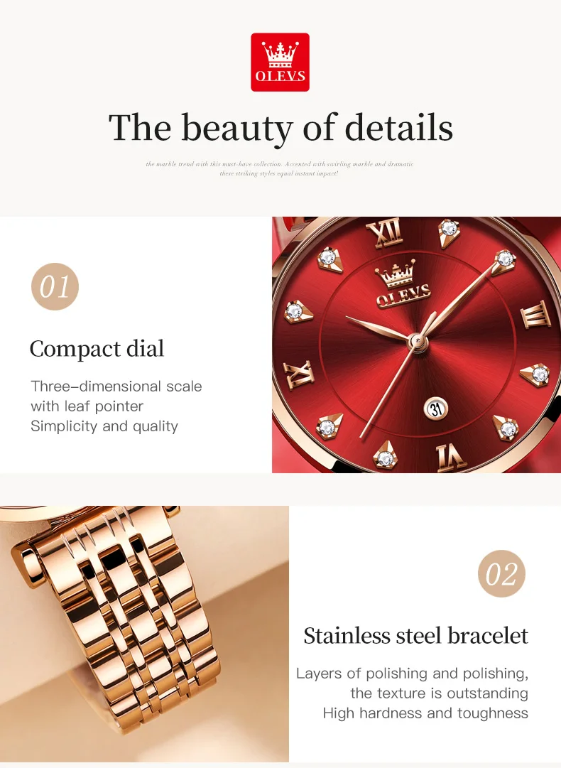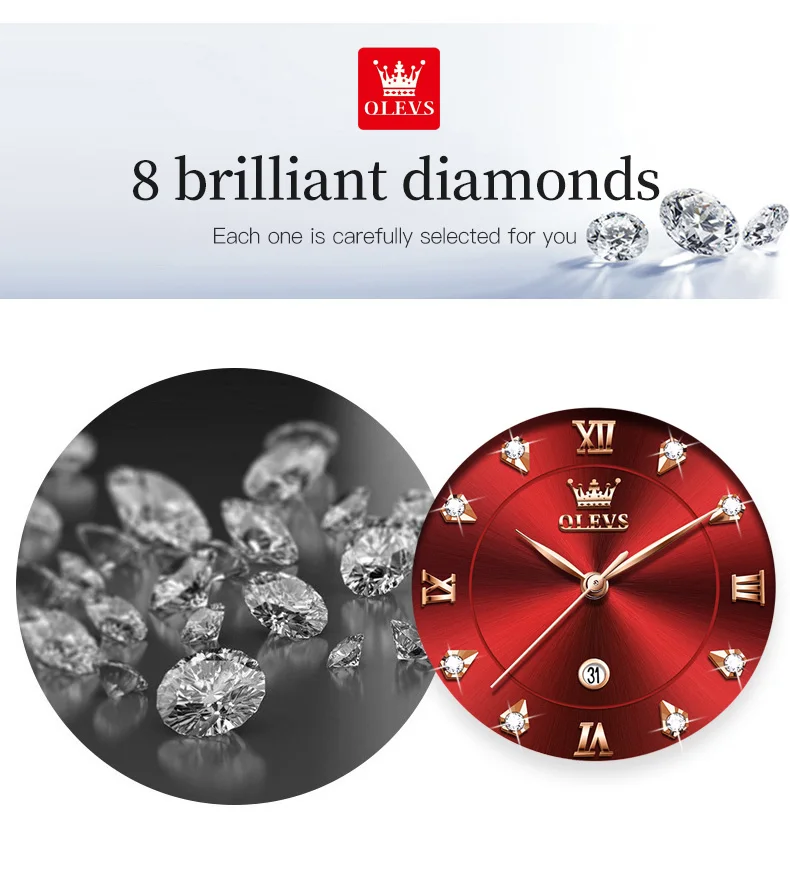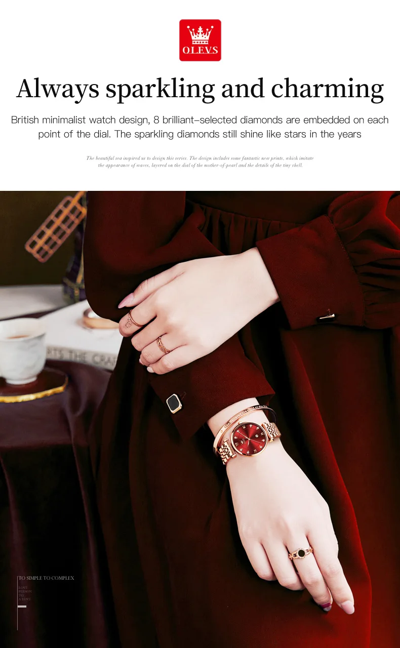 OLEVS Luxury Fashion Rose Gold Diamond Women Watches Wine Red Female Quartz Wrist Watch Ladies Reloj Mujer Relogio