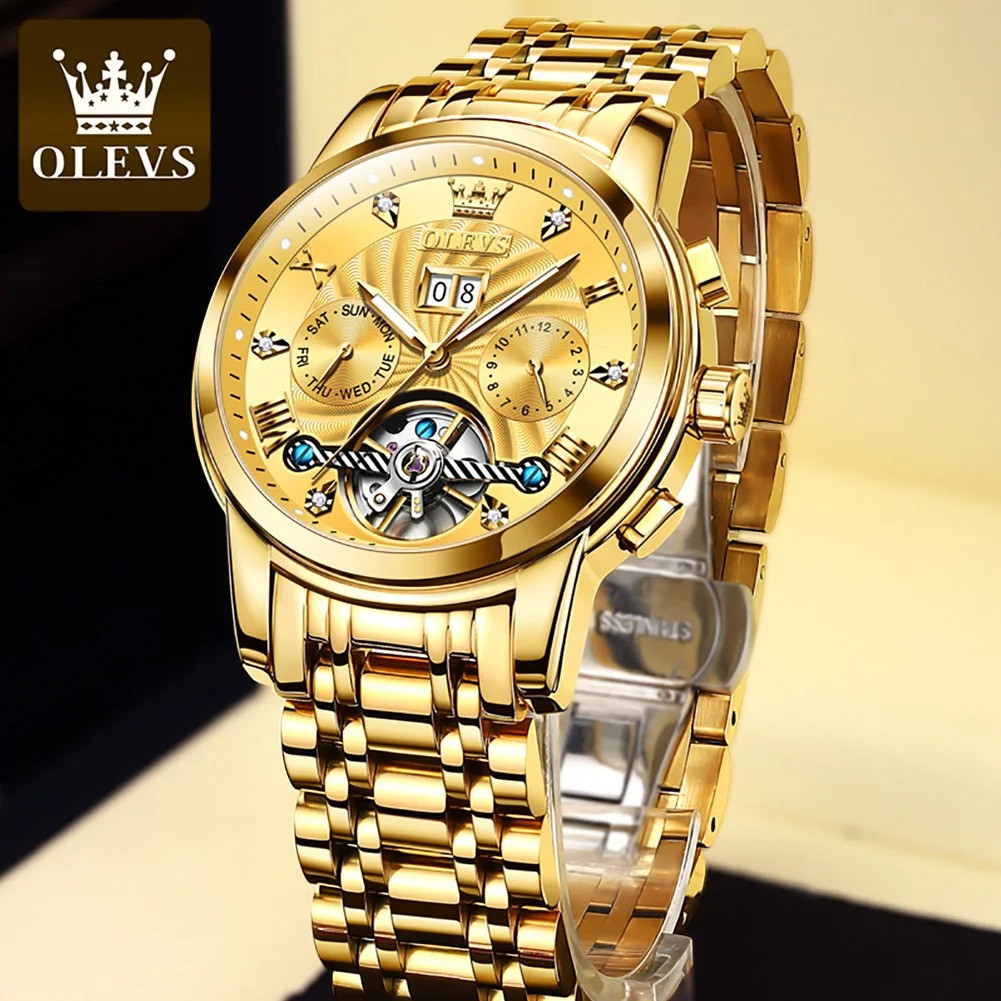 OLEVS 9910 Waterproof Automatic Mechanical Watches For Men, Stainless Steel Strap Business Multifunctional Men Wristwatch