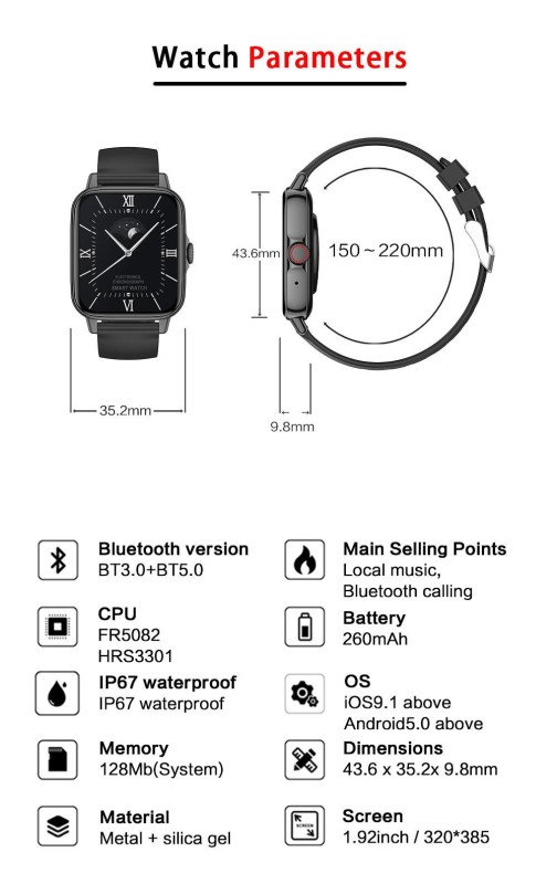 | Item Name | Wireless charging HD screen Bluetooth call music sports health smart watch |